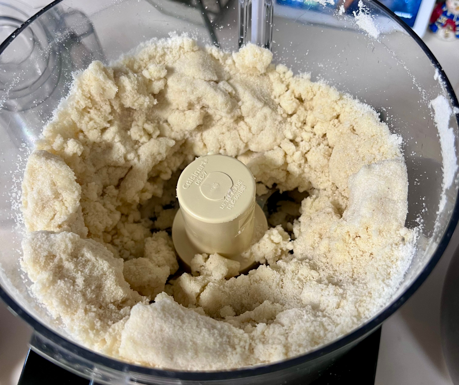 - In a food processor or stand mixer with the paddle attachment, blend almond flour, all-purpose flour, cane sugar, baking powder, and kosher salt.