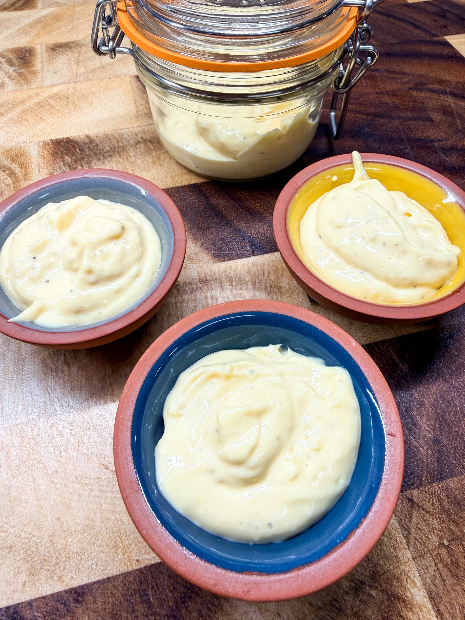 This version starts with high-quality Japanese mayonnaise as the base, which is already emulsified and beautifully smooth. From there, fresh garlic and Dijon mustard add complexity and bite.